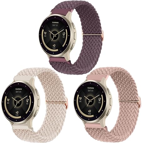 ViCRiOR 3 Pack Braided Stretchy Nylon Watch Bands Compatible with Garmin Venu 2S/ Venu 3S/ Vivoactive 4S/ Vivomove 3S, 18mm Elastic Solo Loop Strap for Garmin Forerunner 265S/255S/255S Music Women Men