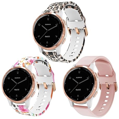ViCRiOR Bands Compatible with Garmin Vivoactive 4S 40mm / Venu 2S, 18mm Quick Release Soft Silicone Fadeless Pattern Printed Replacement Band for Garmin Vivomove 3S.
