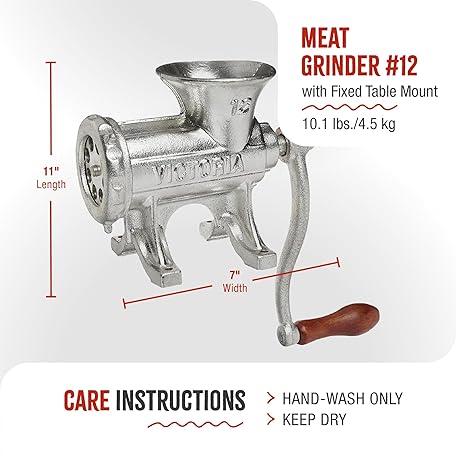 Thông tin sản phẩm Victoria Manual Meat Grinder and Sausage Stuffer, Number 12, Cast Iron, Tabletop Meat Mincer and Sausage Maker