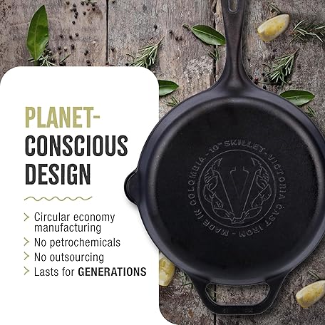 Thông tin sản phẩm VICTORIA Seasoned Cast Iron Induction Frying Pan, 25 cm, Suitable for Stovetop, Barbecue, Oven, Ceramic Hob, Gas, Skillet Free of Toxic Substances, withoVut PTFE or PFOA