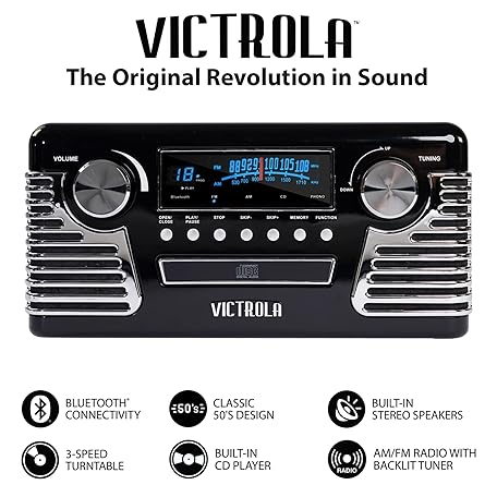 Thông tin sản phẩm Victrola 50's Retro 3-Speed Bluetooth Turntable with Stereo, CD Player and Speakers, Black