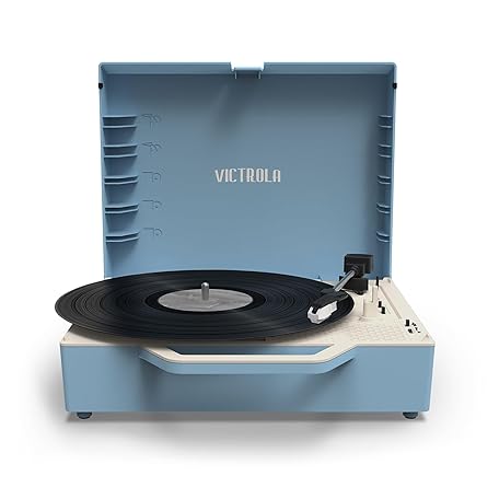 Thương hiệu Victrola là cái tên nổi tiếng được rất nhiều khách hàng trên thế giới chọn lựa. Với kiểu dáng đẹp mắt, sang trọng, sản phẩm Victrola Re-Spin – Sustainable Suitcase Vinyl Record Player, 3-Speed (33 1/3, 45 & 78 RPM), Belt-Driven Bluetooth Turn Table with Built-in Bass Radiator, 3.5mm Headphone Jack (Light Blue) là sự lựa chọn hoàn hảo nếu bạn đang tìm mua một món cho riêng mình.