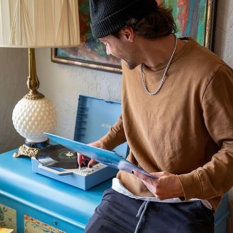 Thông tin sản phẩm Victrola Re-Spin – Sustainable Suitcase Vinyl Record Player, 3-Speed (33 1/3, 45 & 78 RPM), Belt-Driven Bluetooth Turn Table with Built-in Bass Radiator, 3.5mm Headphone Jack (Light Blue)