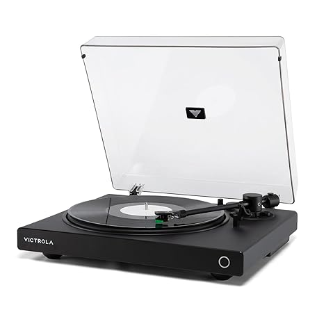 Victrola Wave – Bluetooth Turntable with Auracast – 2-Speed Vinyl Record Player, Audio Technica AT-VM95E Cartridge, Hi-Res aptX HD and Adaptive Bluetooth Streaming, Auracast Broadcast Audio (Black)