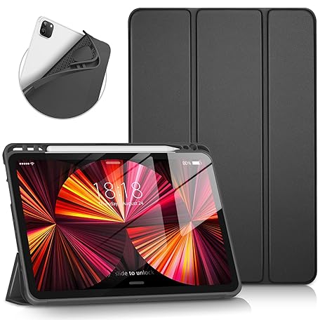 VIKESI for iPad Pro 11 inch Case, Soft Smart Cover with Pencil Holder for iPad Pro 11-inch 4th/3rd/2nd/1st Generation (2022/2021/2020/2018 Released),Auto Sleep/Wake, Black