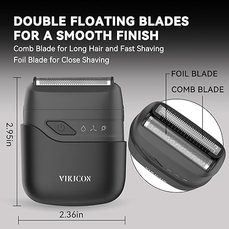 Thông tin sản phẩm VIKICON Foil Shaver, Electric Razors for Men, Compact Travel Face Shaver, Mini Portable Razor Shaving Face, Waterproof Beard Trimmer, Double Floating Blade for Close Shaving