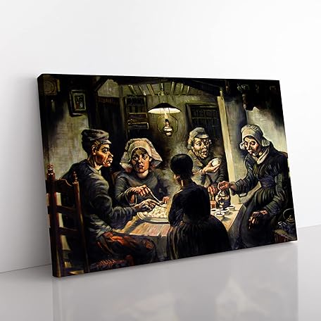 Vincent Van Gogh Potato Eaters Classic Painting Canvas Wall Art Print Ready to Hang, Framed Picture for Living Room Bedroom Home Office Décor, 50x35 cm (20x14 Inch)