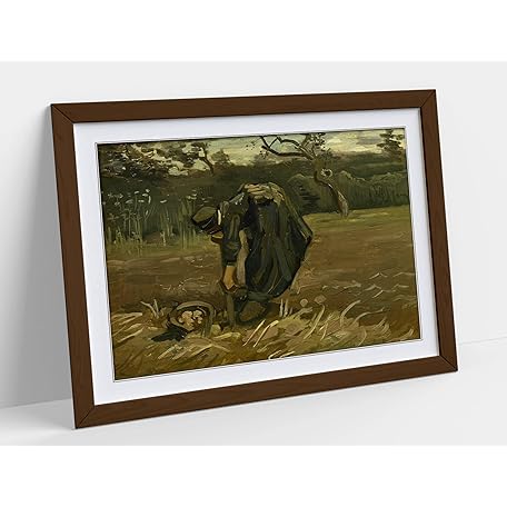 Vincent Van Gogh, Potato Harvester Framed Wall Art Print Picture - A3 - Walnut Frame