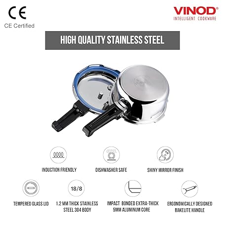 Thông tin sản phẩm Vinod Pressure Cooker Stainless Steel – Outer Lid - 2 Liter – Induction Base Cooker – Indian Pressure Cooker – Sandwich Bottom – Best Used For Indian Cooking, Soups, and Rice Recipes, Quinoa