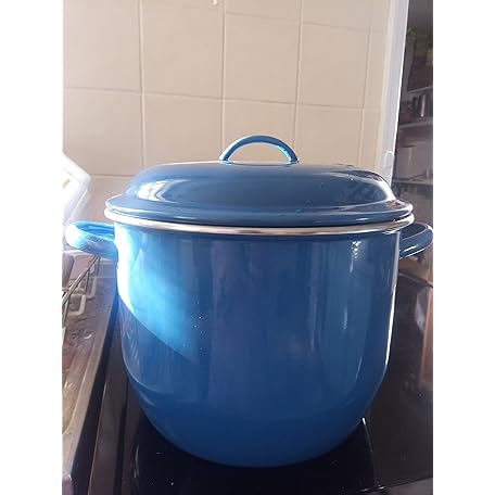 Vintage Inspired Enamel Steel Casserole Stock Pot Premium Enamel Crock Pot with Handles 24 cm Blue/Stainless