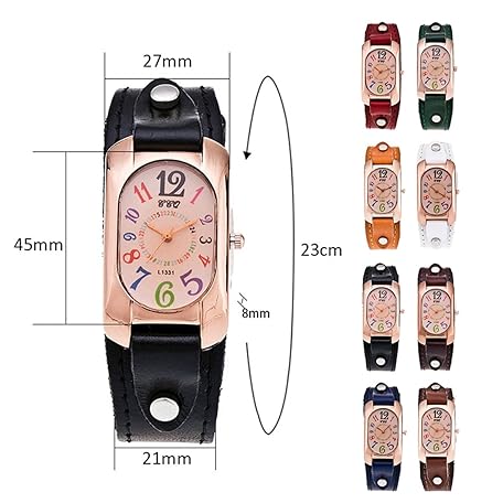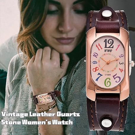 Thông tin sản phẩm Vintage Leather Quartz Stone Women's Watch, Women's Leather Strap Watch, Ladies Genuine Leather Strap Watch, Rectangle Digital Watch (Orange)