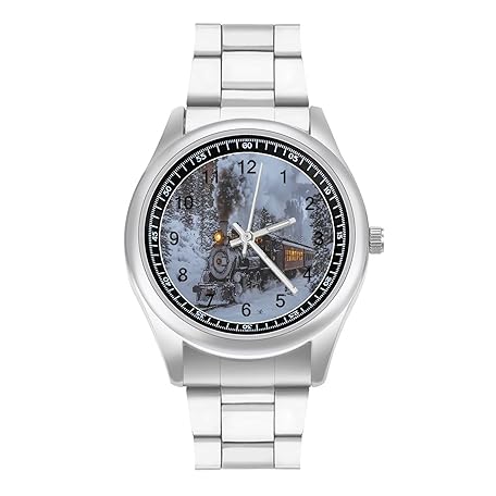 Vintage Steam Train Snowy Day Wrist Watches Unisex Metal Watch Band Business Watch Analog Watches