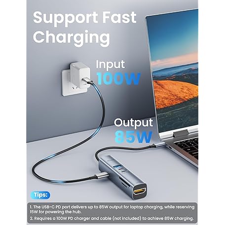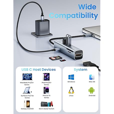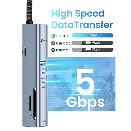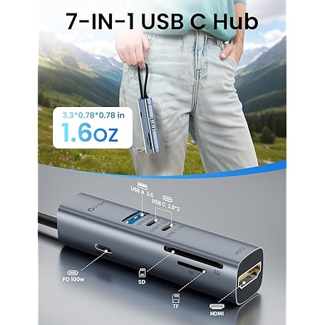 Thông tin sản phẩm VIOY USB C Hub 7-in-1, Multiport Adapter with 4K HDMI, 100W PD Charging, SD/TF Card Reader, 1 USB-A 3 .0 and 2 USB-C 2.0 Data Transfer Ports for MacBook Pro/Air, iPad Pro, Laptop, XPS