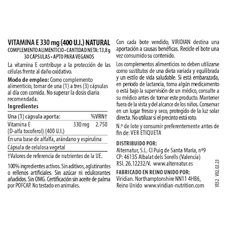 Sản phẩm Viridian - Vitamin E 400IU 330mg – 30 Vegan Capsules | Natural d-Alpha Tocopherol Derived from SOYA Bean Oil | Contributes to Protection of Cells from Oxidative Stress | 100% Active Ingredients đang được bán với giá ưu đãi là $19.0205 tại nước Anh.