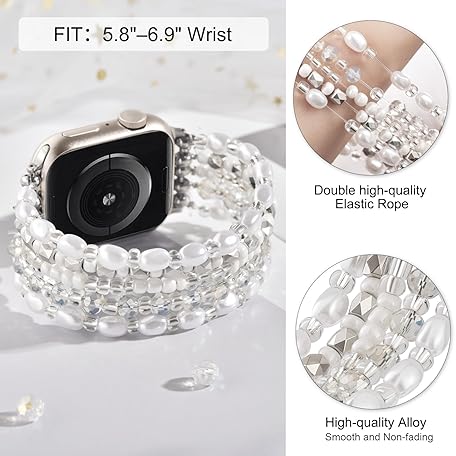 Thông tin sản phẩm VISOOM Beaded Boho Bracelet For Apple Watch Bands Women 46mm 45mm 44mm 41mm 42mm 41mm 40mm 38mm, Pearl Wrap For Cute Stretchy Fancy Apple iWatch iPhone Series 10 Se 9 8 7 6 5 4 3 2 1 Watch Strap Band