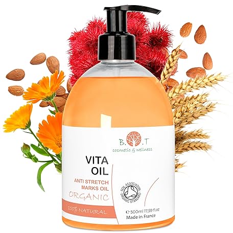 Vita Oil Anti-Stretch Marks: Pregnancy Stripes, Body Firming Oil, Tackles Skin Sagging by 87%, Enhances Skin Appearance, Elasticity Booster (Almonds, Vitamins A & E) - 500 ml