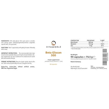 Sản phẩm Vita World Beta Glucan - Beta Glucan Capsules High Dose 500mg per Day (90 Vegan Capsules) - High Bioavailability with Vitamin C + Zinc - No Additives & Gluten đang được bán với giá ưu đãi là $31.5555 tại nước Anh.