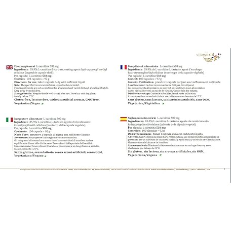 Sản phẩm Vita World L-Carnitine 500Mg 100 Capsules Vegan/Vegetarian Made in Germany đang được bán với giá ưu đãi là $22.1815 tại nước Anh.