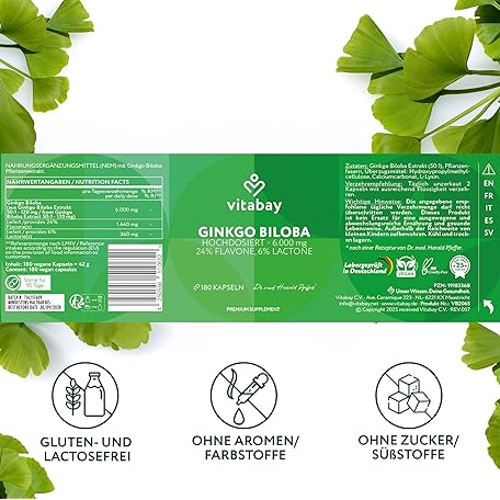 Sản phẩm vitabay Ginkgo Biloba 6000mg - 180 Ginkgo Capsules Vegan - Capsules with 24% Flavones & 6% Lactones - Laboratory Tested đang được bán với giá ưu đãi là $26.2145 tại nước Anh.