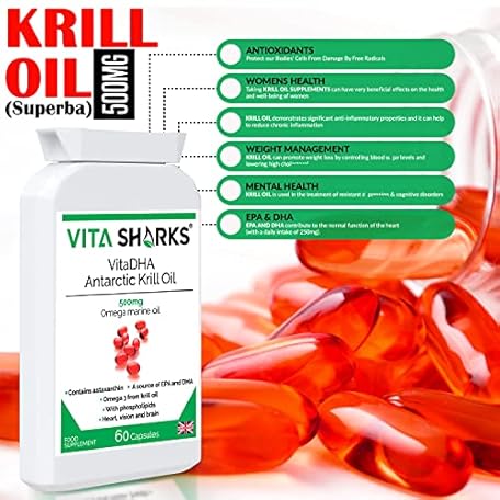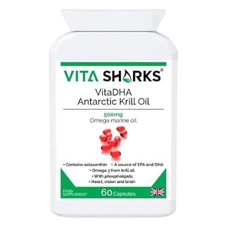 Thương hiệu Vita Sharks là cái tên nổi tiếng được rất nhiều khách hàng trên thế giới chọn lựa. Với kiểu dáng đẹp mắt, sang trọng, sản phẩm VitaDHA Antarctic Krill Oil a Potent Source of EPA, Astaxanthin & DHA for Brain Function, Heart Health, Blood, Hair, Skin, Joints, Connective Tissues & Liver | Cod Liver Oil Alternative là sự lựa chọn hoàn hảo nếu bạn đang tìm mua một món cho riêng mình.