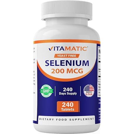 Vitamatic Yeast Free Selenium 200mcg as Selenomethionine Supplement Essential Trace Mineral with Superior Absorption 240 Tablets