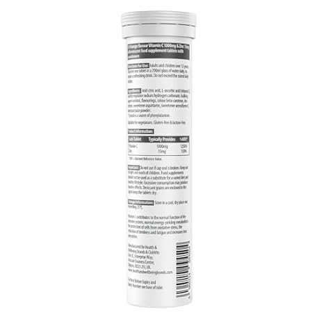 Sản phẩm Vitamin C 1000mg & Zinc 15mg Orange Flavour Effervescent Tablets - High Strength Tablets for a Healthy Immune System (4 Tubes) đang được bán với giá ưu đãi là $14.6605 tại nước Anh.