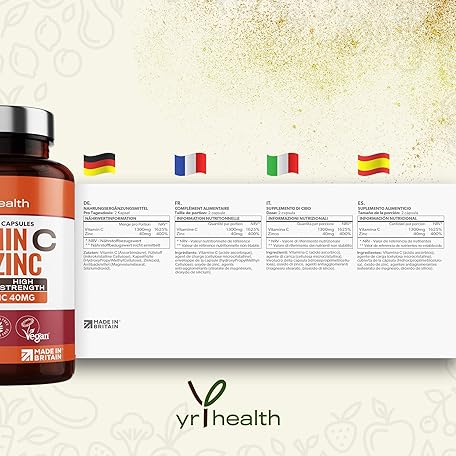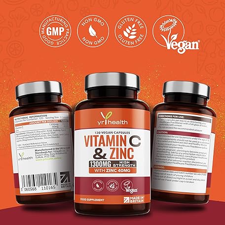 Sản phẩm Vitamin C 1300mg and Zinc 40mg High Strength - VIT C and Zinc for Maintenance of Normal Immune System - 120 Vegan Capsules not Tablets - 2 per Daily Serving - Made in The UK by YrHealth đang được bán với giá ưu đãi là $17.1457 tại nước Anh.