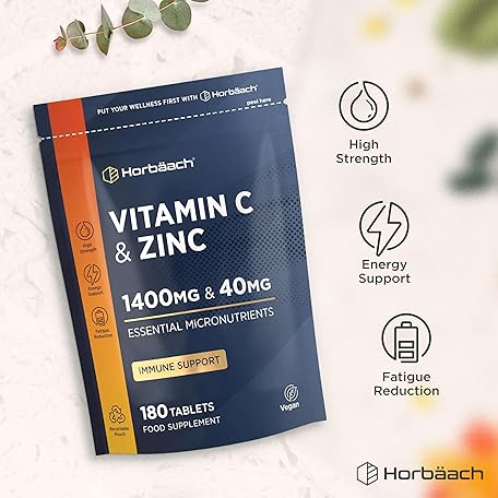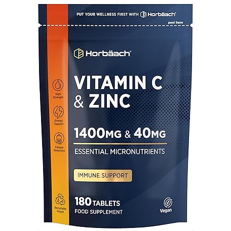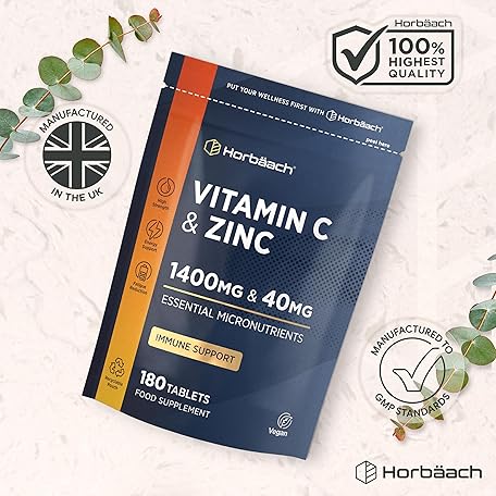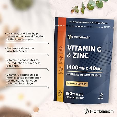 Sản phẩm Vitamin C 1400mg and Zinc 40mg Tablets | 180 Count | High Strength Complex with Vitamin C as Ascorbic Acid | Immune Support | Suitable for Vegans | by Horbaach đang được bán với giá ưu đãi là $14.6278 tại nước Anh.