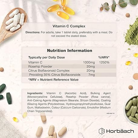Thương hiệu Horbäach là cái tên nổi tiếng được rất nhiều khách hàng trên thế giới chọn lựa. Với kiểu dáng đẹp mắt, sang trọng, sản phẩm Vitamin C Complex with Rosehip and Bioflavnoids 1000mg | 180 Tablets | High Strength Supplement | Vegan and Vegetarian Friendly | by Horbaach là sự lựa chọn hoàn hảo nếu bạn đang tìm mua một món cho riêng mình.