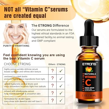 Thương hiệu ETRONG là cái tên nổi tiếng được rất nhiều khách hàng trên thế giới chọn lựa. Với kiểu dáng đẹp mắt, sang trọng, sản phẩm Vitamin C Serum Face with Hyaluronic Acid,Vitamin E,20% Vitamin C for Anti-wrinkle,Dark Circle,Fine Lines and Sun damage – Restore&Boost Collagen (30ml) là sự lựa chọn hoàn hảo nếu bạn đang tìm mua một món cho riêng mình.
