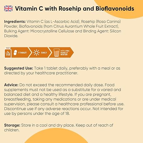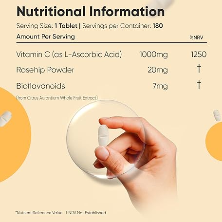 Thông tin sản phẩm Vitamin C Tablets 1000mg - 180 Tablets - 6 Months Supply - Added Rosehips & Bioflavonoids - Vegan, Gluten-Free & Non-GMO - VIT C Supplement (As Ascorbic Acid) - 1 per Day - Made in The UK