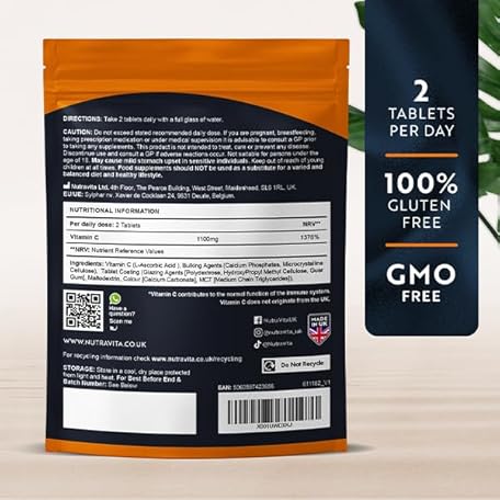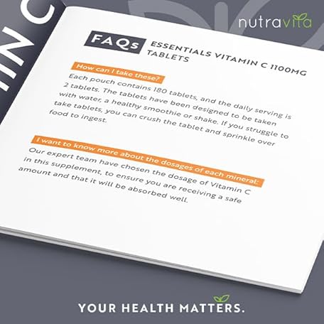 Sản phẩm Vitamin C Tablets 1100mg – 180 Premium Vegan and Vegetarian Tablets – 3 Month Supply - High Strength Ascorbic Acid - Vitamin C for The Immune System - Letterbox Friendly - Made in The UK by Nutravita đang được bán với giá ưu đãi là $8.1641 tại nước Anh.