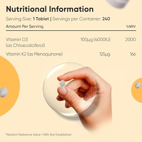 Sản phẩm Vitamin D3 4000IU & K2 125μg (MK7) | 240 Easy to Swallow Vitamin D Tablets as Cholecalciferol | 8 Months Supply | VIT D3 K2 Supplements | 1 a Day VIT D đang được bán với giá ưu đãi là $14.5406 tại nước Anh.