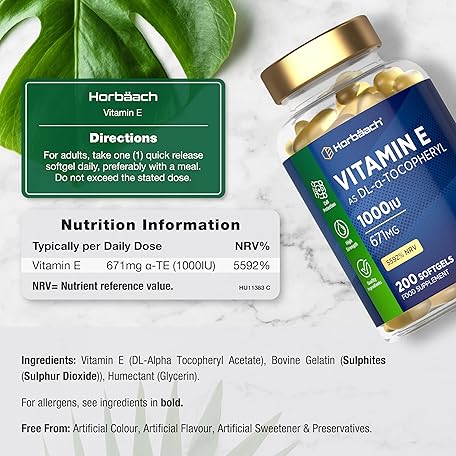 Sản phẩm Vitamin E Capsules 1000iu | 200 Softgels - 6+ Months Supply | Highly Absorbable VIT E as DL-Alpha Tocopheryl Acetate for Cell Protection | by Horbaach đang được bán với giá ưu đãi là $30.7271 tại nước Anh.