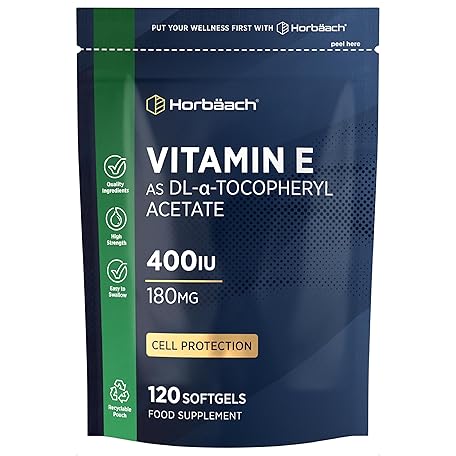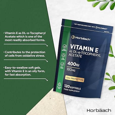 Sản phẩm Vitamin E Capsules 400iu | 120 Softgels (4 Months Supply) | Highly Absorbable VIT E as Alpha Tocopheryl Acetate | High Strength Cell Protection from Oxidative Stress | Easy to Swallow | by Horbaach đang được bán với giá ưu đãi là $12.971 tại nước Anh.
