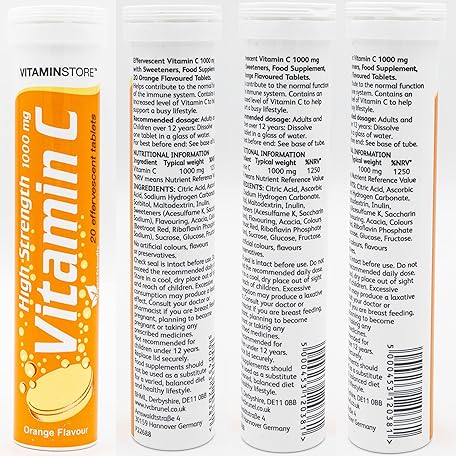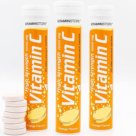 Sản phẩm Vitamin Store 60 High Strength Vitamin C (1000mg) Effervescent Tablets - 3 Packs of 20 Vitamin C Dissolvable Tablets - One-a-Day - Soluble Orange Flavoured Vitamin C Fizzy Tablets to Support Immunity đang được bán với giá ưu đãi là $10.028 tại nước Anh.