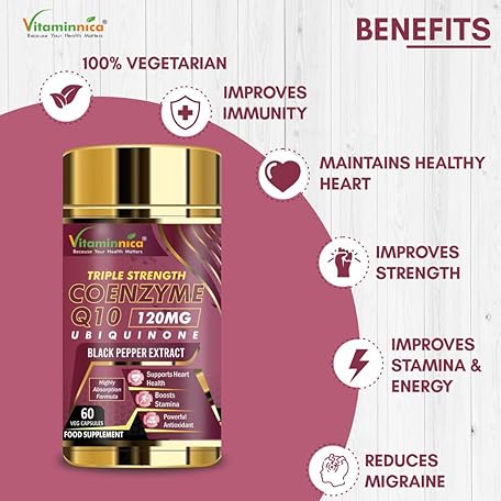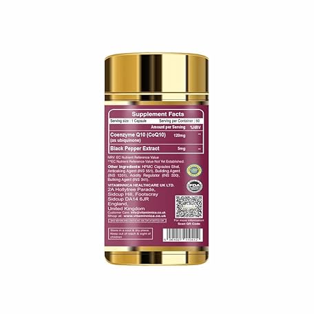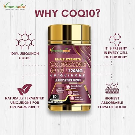 Sản phẩm Vitaminnica CoQ10 120mg- Triple Strength with Vitamin C, E & Black Pepper | 60 Capsules | Antioxidant Supports Heart Health đang được bán với giá ưu đãi là $38.4116 tại nước Anh.