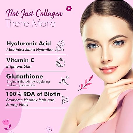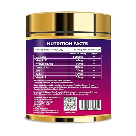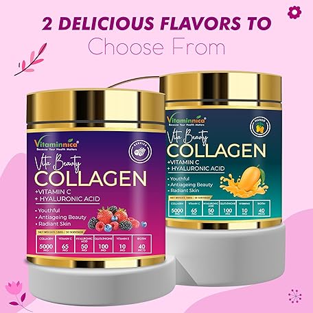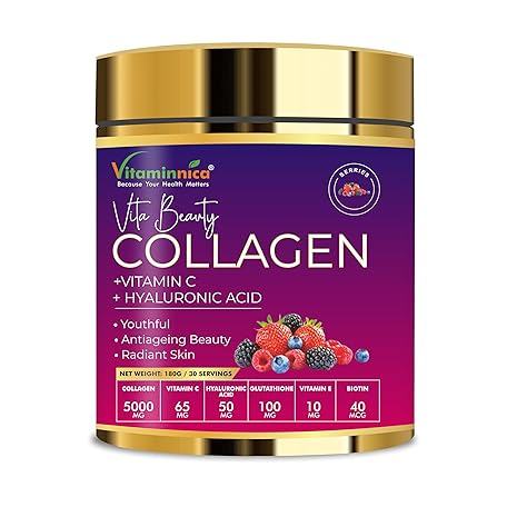 Vitaminnica Vita Beauty Premium Bovine Collagen Powder (Type I & III) with Hyaluronic Acid, Glutathione, Vitamin C, Biotin & Vitamin E | for Glowing Skin & Anti-ageing | 30 Servings | Berries Flavour