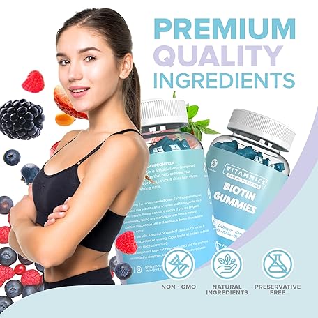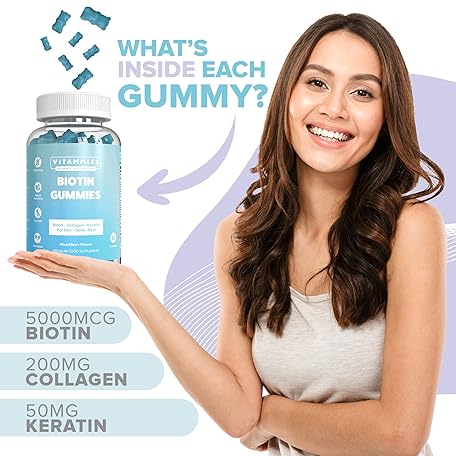 Thông tin sản phẩm Vitammies Biotin Gummies 5000mcg for Hair, Skin, and Nails | Multivitamin for Women with Biotin, Keratin & Fish Collagen | Non Vegan | Anti-Aging | Gluten-Free | Plant-Based (60 Gummies)