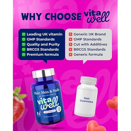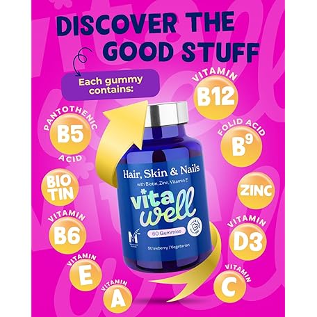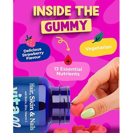Sản phẩm Vitawell Hair Skin & Nails Gummies | Support for Hair Growth + Skin + Nails Vitamins Chews | Complex Formula Biotin, Zinc, Selenium & Vitamin E | 60 Strawberry Flavour | | Multivitamin Gummies đang được bán với giá ưu đãi là $11.3796 tại nước Anh.