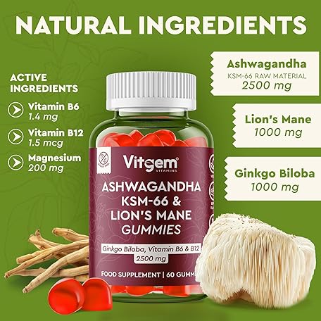 Sản phẩm Vitgem 60 Chews KSM-66 Ashwagandha and Lions Mane Gummies for Adults – Sugar-Free Natural Nootropic for Focus, Memory & Stress Relief – Vegan Berry Flavor – Cognitive & Cortisol Balance Supplement đang được bán với giá ưu đãi là $24.7539 tại nước Anh.
