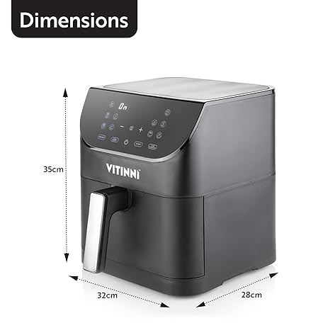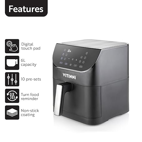Thông tin sản phẩm Vitinni 6L Air Fryer, Spacious Square Basket, Digital Air Fryer Oven with LED Interface, 10 Pre-sets, Large Airfryer for Family, 60 Minute Timer, Reaches Temperatures up to 200°C
