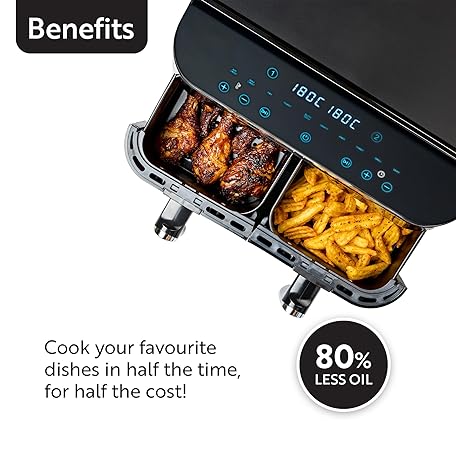 Thông tin sản phẩm Vitinni Dual Basket 8L Air Fryer, Digital Interface, 10 Different Cooking Modes, 2 Drawer Air Fryer for Large Family, Dehydrate Bake and Slow Cook Functions