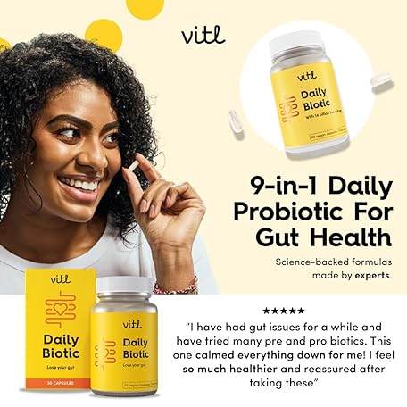 Sản phẩm Vitl Daily Biotic with 9 Probiotic Strains - 30 Vegan Capsules - Probiotic with a Complex Blend of Gut Friendly Bacteria - Restore Balance in The Gut & Aid Digestion - 1 Month Supply đang được bán với giá ưu đãi là $13.8212 tại nước Anh.