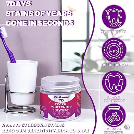 Thông tin sản phẩm ViviLume Professional Teeth Whitening Powder with Pap+ | Peroxide-Free, Enamel Safe & Sensitivity-Free | Fast Stain Removal for Coffee, Tea, Smoke | Lavender Mint, 30g/1.1oz