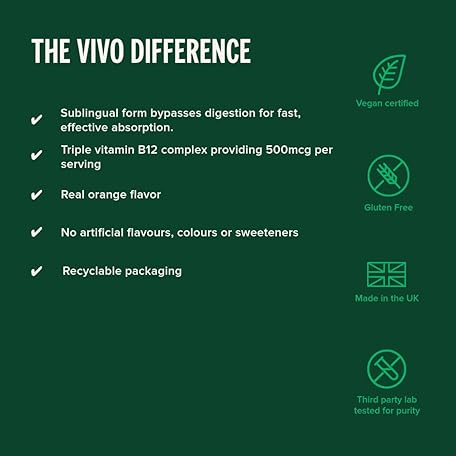 Thông tin sản phẩm Vivo life Vitamin B12 Complex, High Potency Health Supplement, Orange Flavour Liquid Drops, 60ml, 60 Servings