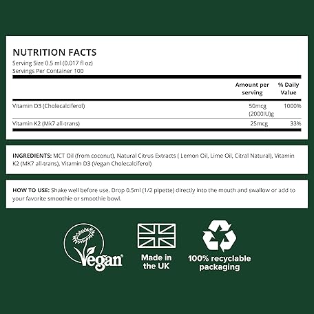 Thông tin sản phẩm Vivo life Vitamin D3 K2, 50ml Liquid Complex Drops, 2000iu of D3, Vegan Health Supplement for Men and Women, 100 Servings