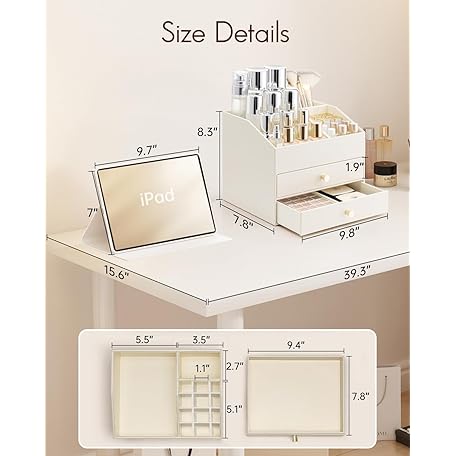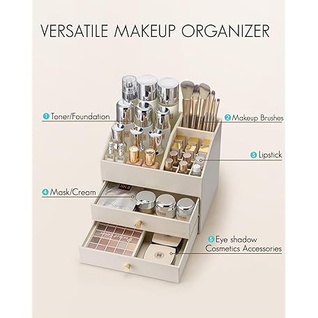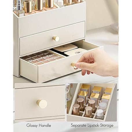 Sản phẩm Vlando Make-Up Organiser with 3 Drawers, Dressing Table Organiser, Cosmetic Organiser, Makeup Organiser for Bathroom, Dresser Skincare, Beige đang được bán với giá ưu đãi là $55.7535 tại nước Anh.
