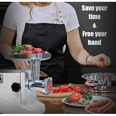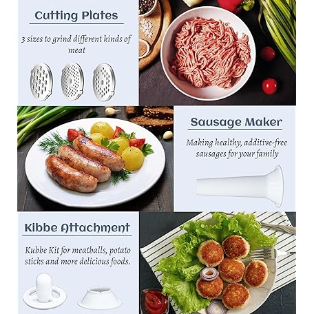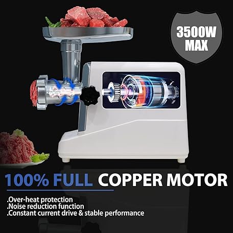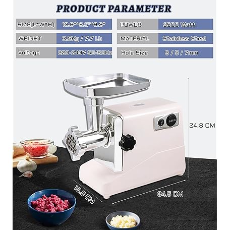 Thông tin sản phẩm VNIMTI Meat Grinder Electric, 3500W Meat Mincer Machine, Stainless Steel Sausage Maker for Home Using with 3 Cutting Plates, Sausage Stuffer Tube & Kubbe Kit Kitchen(Classic - White)