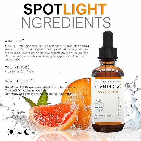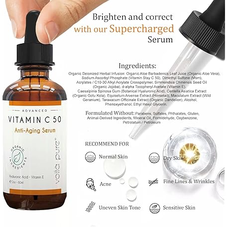Thông tin sản phẩm Voila pure VITAMIN C SERUM for Face with Hyaluronic Acid - Anti-Ageing Vitamin C Face Serum - Vit C with 5% Pure Hyaluronic Acid Serum for Face - For Age Spots, Fine Lines, Wrinkles 60ml